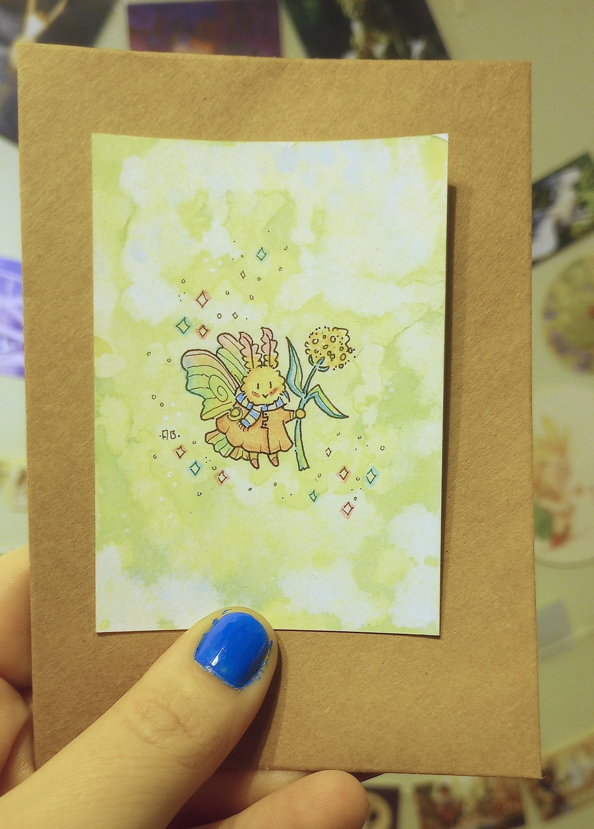 - Drawn on a 2.3 x 3.5 " watercolor paper.